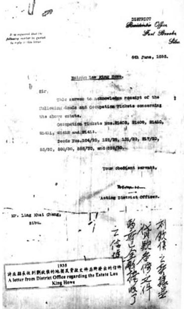 Letter from chief secretary to J.M.Hoover Power of Attorney from Lau King